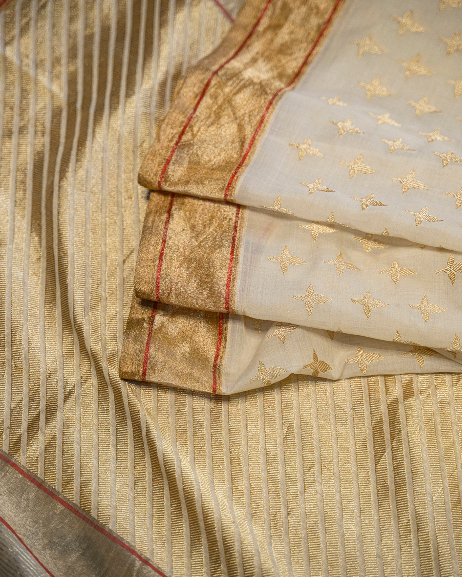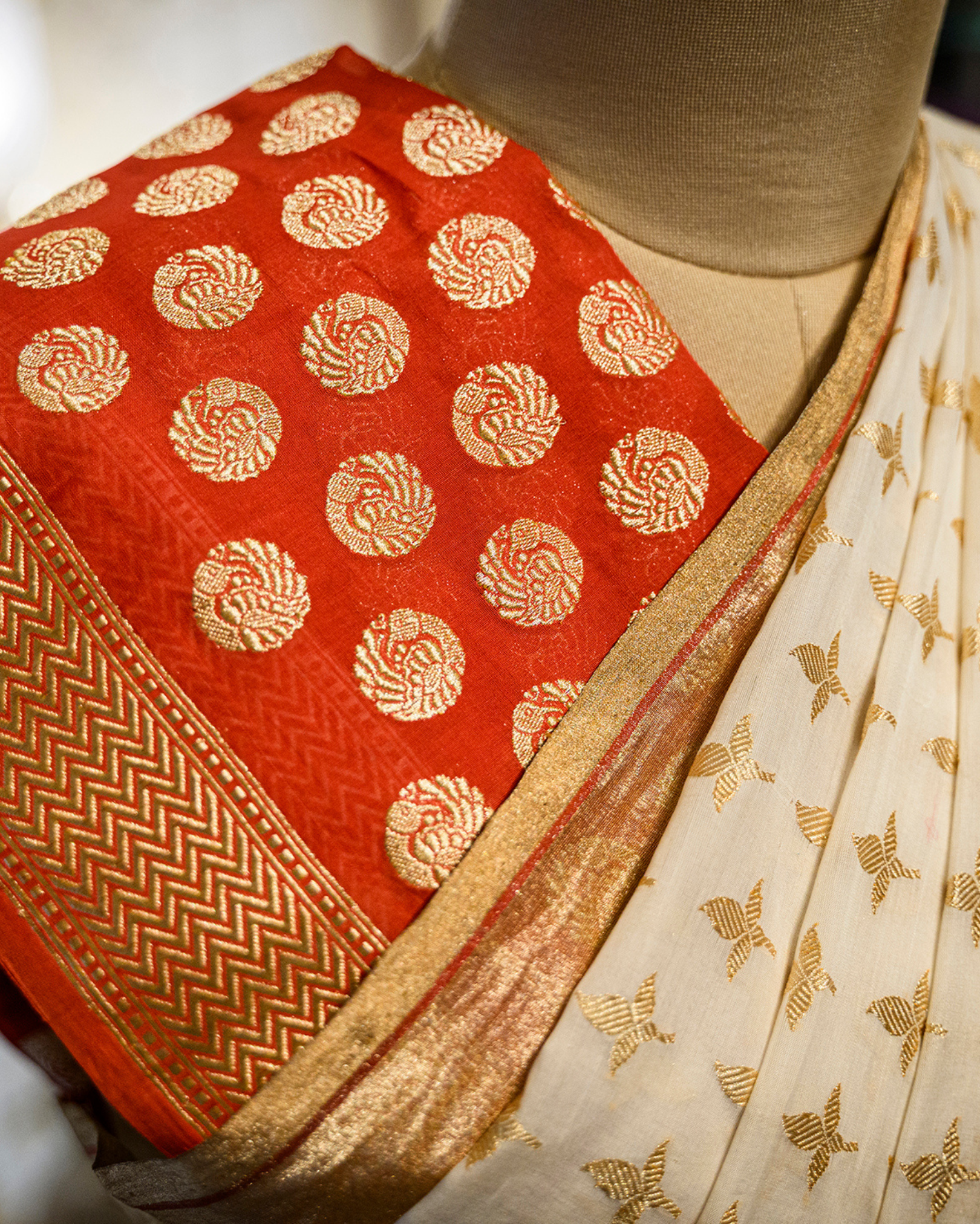 Sari en coton et soie en tissage traditionnel Assam